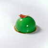 A sponge cake topped with airy mango mousse and fresh mango pieces offers a vibrant and refreshing flavor experience for the taste buds.